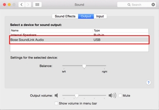 Nella scheda "Riproduzione", seleziona "Bose SoundLink Audio".